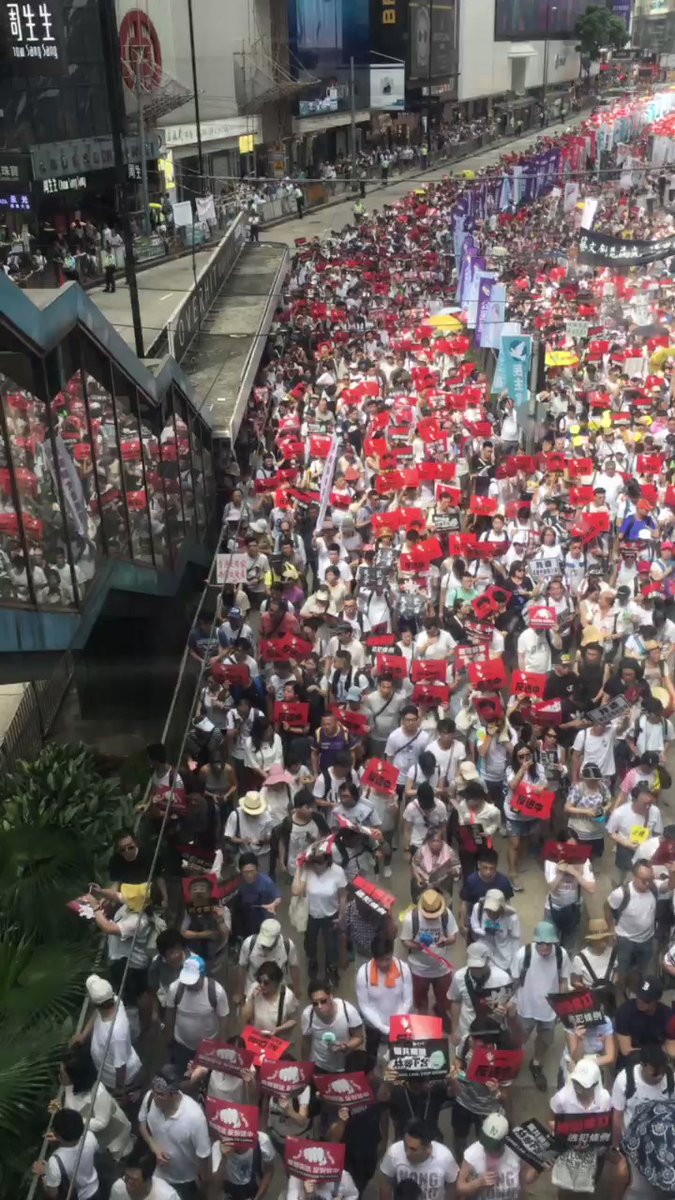 香港ではいま中国への犯罪者引き渡し法案反対のデモが行われていて、参加している友人によれば100万人が参加しているらしく、香港史上最大のデモらしい。というか、アジアでも最大規模のデモだろう。写真を見ると凄い数で、警官も道路を開放している。民主主義を死なせないために、我々も見習うべきだ pic.twitter.com/RVstWUqiIV