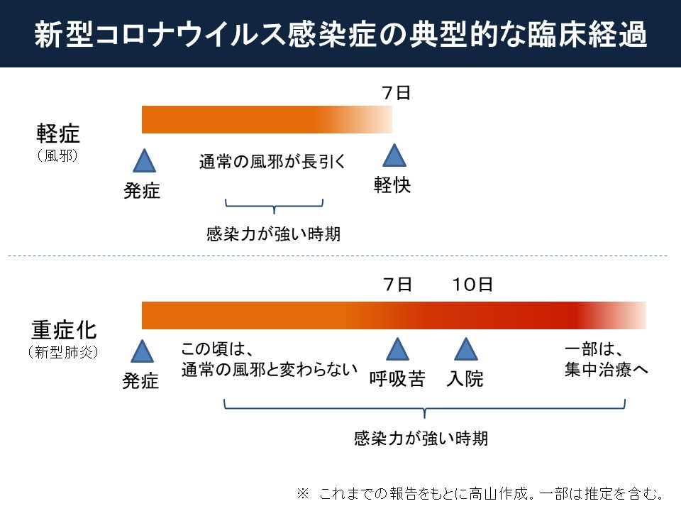 新型コロナに感染したときの臨床像は、2つのパターンに分けられます。