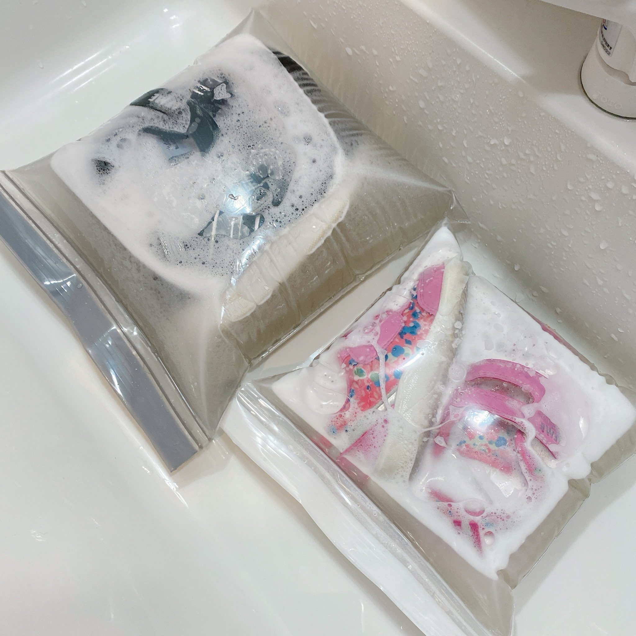 ジップロックに洗剤と靴とお湯入れてモミモミフリフリして放置して洗い流して干すだけ??