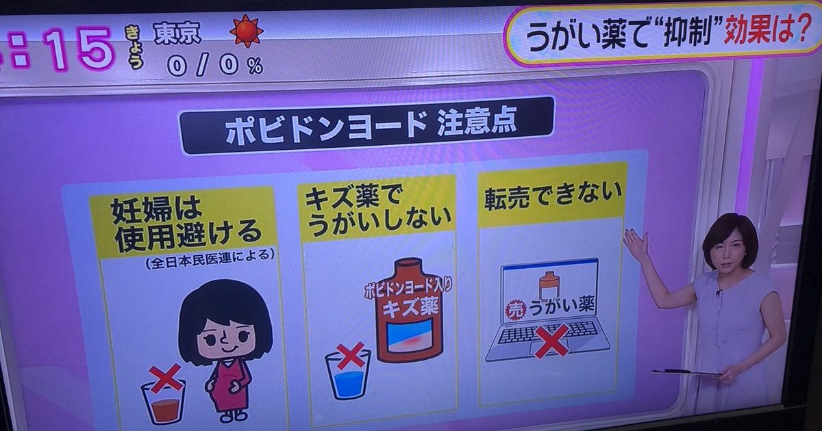 あとイソジンとか慢性的に使うと、授乳中の方や妊娠中の方はお子さんに影響できるから注意喚起が必要なはずだけど、誰かやってんのかな?あと通報先はここな。厚生労働省が管轄してる。https://t.co/Xm5wH1XYMh