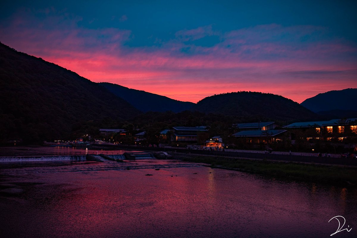 逢魔が時の嵐山、怪異が出てきそうな妖艶な焼け色だった。 pic.twitter.com/sdd9SErPBs