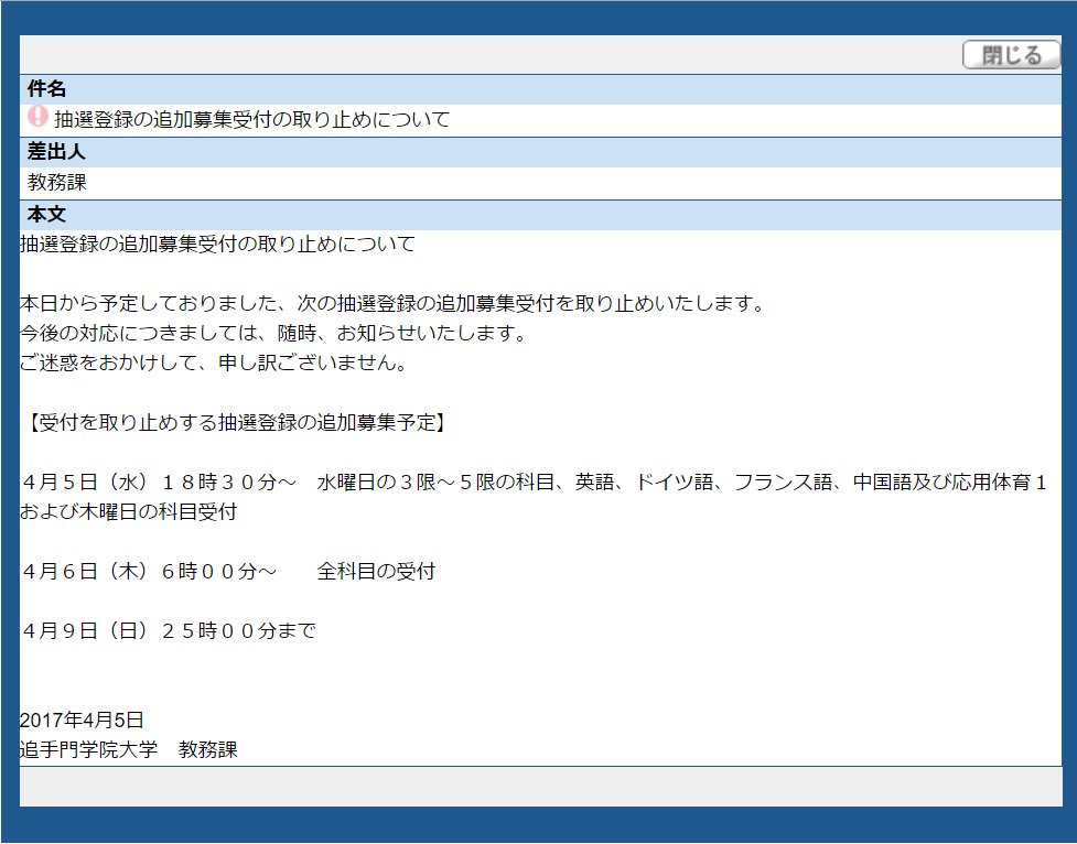 抽選落ちた人が単位足りなくて卒業できないと教務課にクレーム