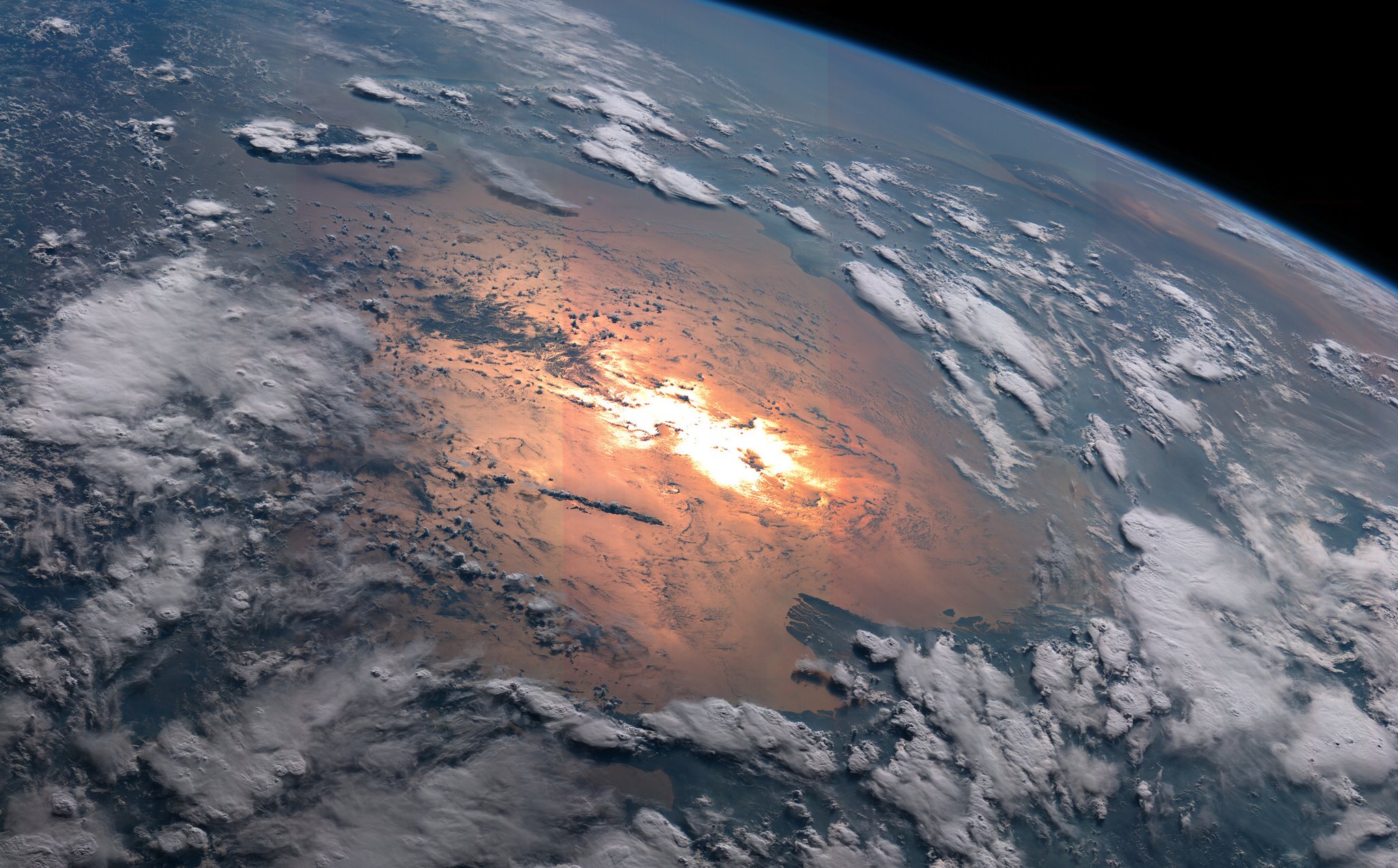 ついさっきの地球,夕陽の光が反射してるところだけ雲がなくてなんか壮大. pic.twitter.com/R9Ryekcv3B — 荒木健太郎 (@arakencloud) 2017年5月9日
