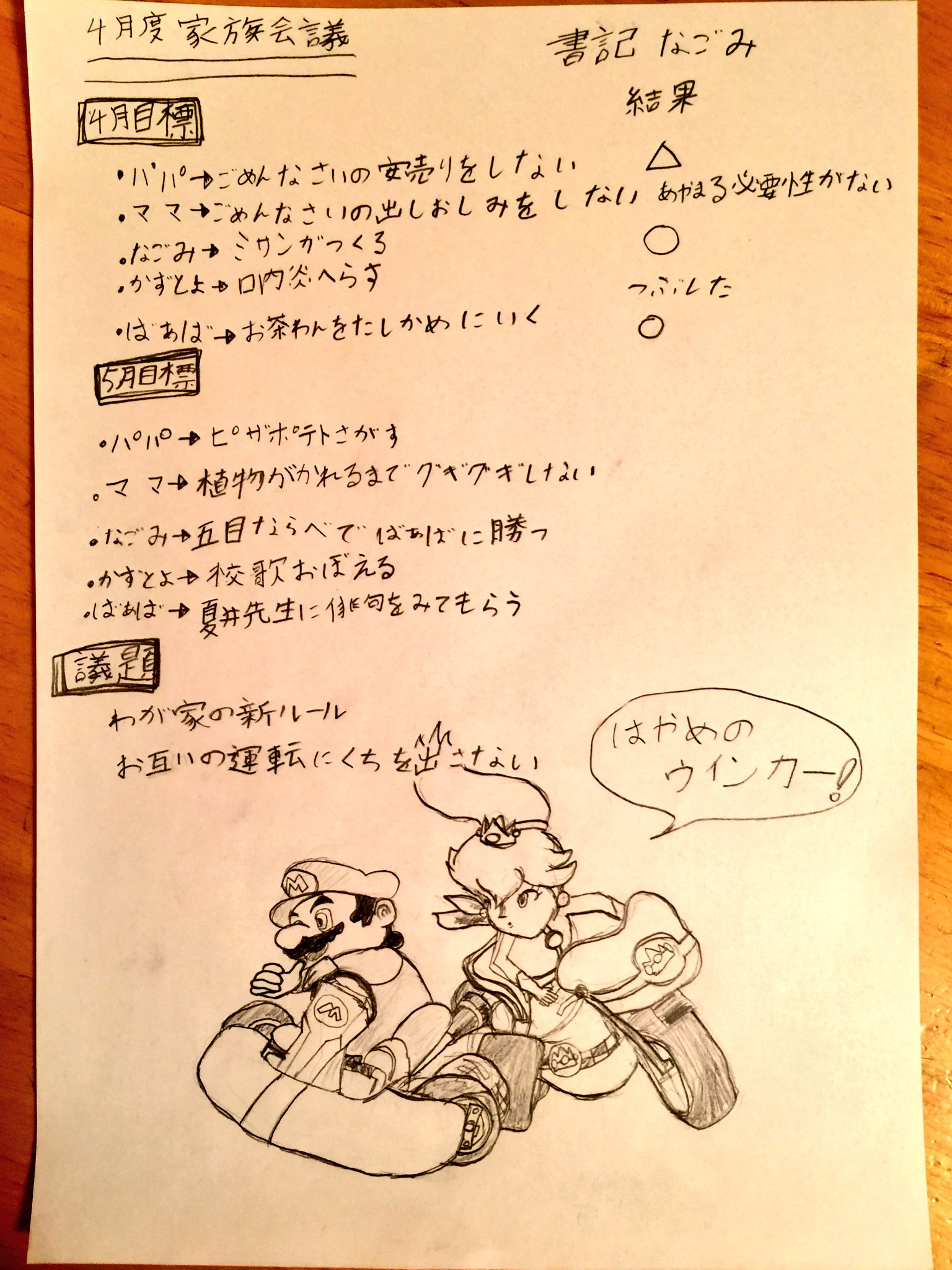 4月度、家族会議の議事録です。ご査収くださいませ。 pic.twitter.com/9wPUqV9uA3 — もひかん@書籍発売御礼! (@mohikan1974) 2017年5月7日
