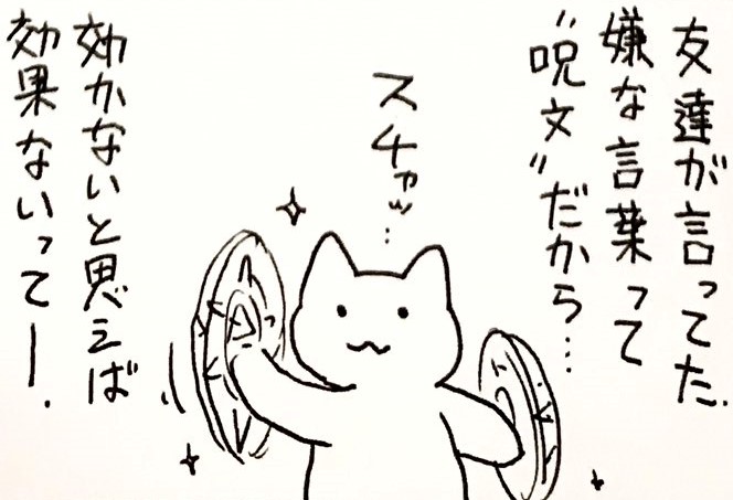 友達の言ってた「嫌な言葉は呪文だから気にしなければその魔法は効かない」がその通りだと思った。耐性を持ってれば強い魔法でも効果が浅い様に、気にさえしなければどんな呪文も自分に届かないのだと思う。本当…教えられる事が多いです…