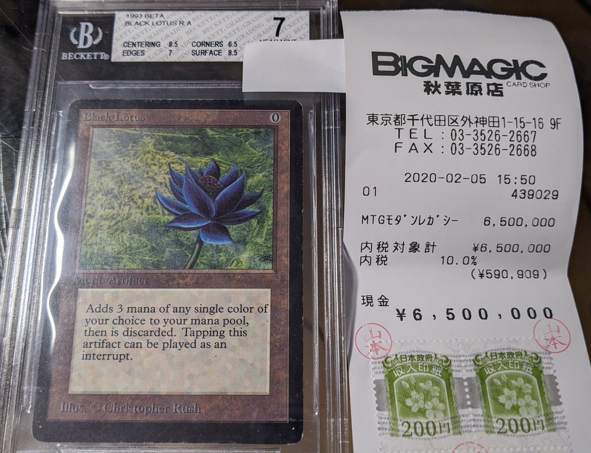 【MTG】超有名な高額カード!!!鑑定済α版のBlack Lotusを入荷しました!!!!お値段なんと650万円!!!!!コレクターの皆様お待ちしております!!! pic.twitter.com/3xNaIjKhdE— BIGMAGIC秋葉...