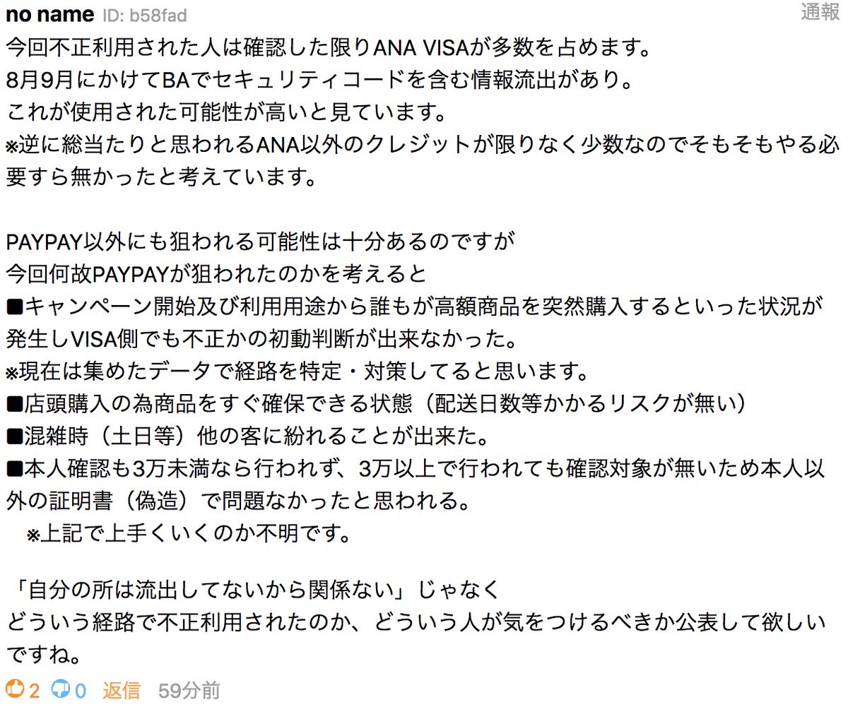 ツイッター 「私はPayPay使ってないから大丈夫」は間違い、身に覚えのないクレカ使用履歴がないか各自チェックし続ける