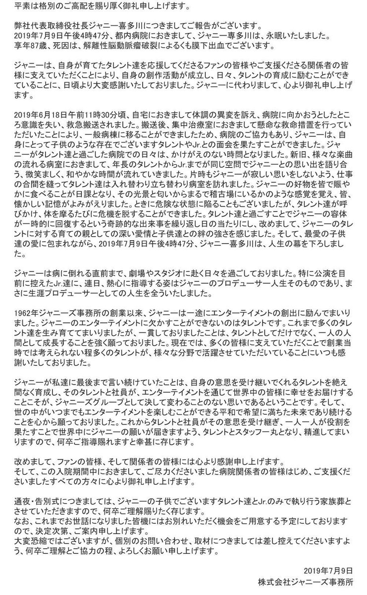 ツイッター ジャニーさんの家族葬の写真