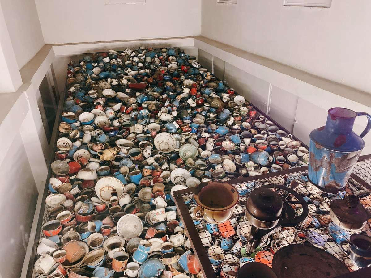 アウシュビッツに行き、刈られた髪の毛で作られた絨毯とか、没収された鞄、靴、メガネなどを見たが、1番私がウルウル涙が出そうになったのがこの食器の山だった。新しい生活をするんだ!とみんな食器を持ってきていた。しかし、使われることもなく、すぐガス...