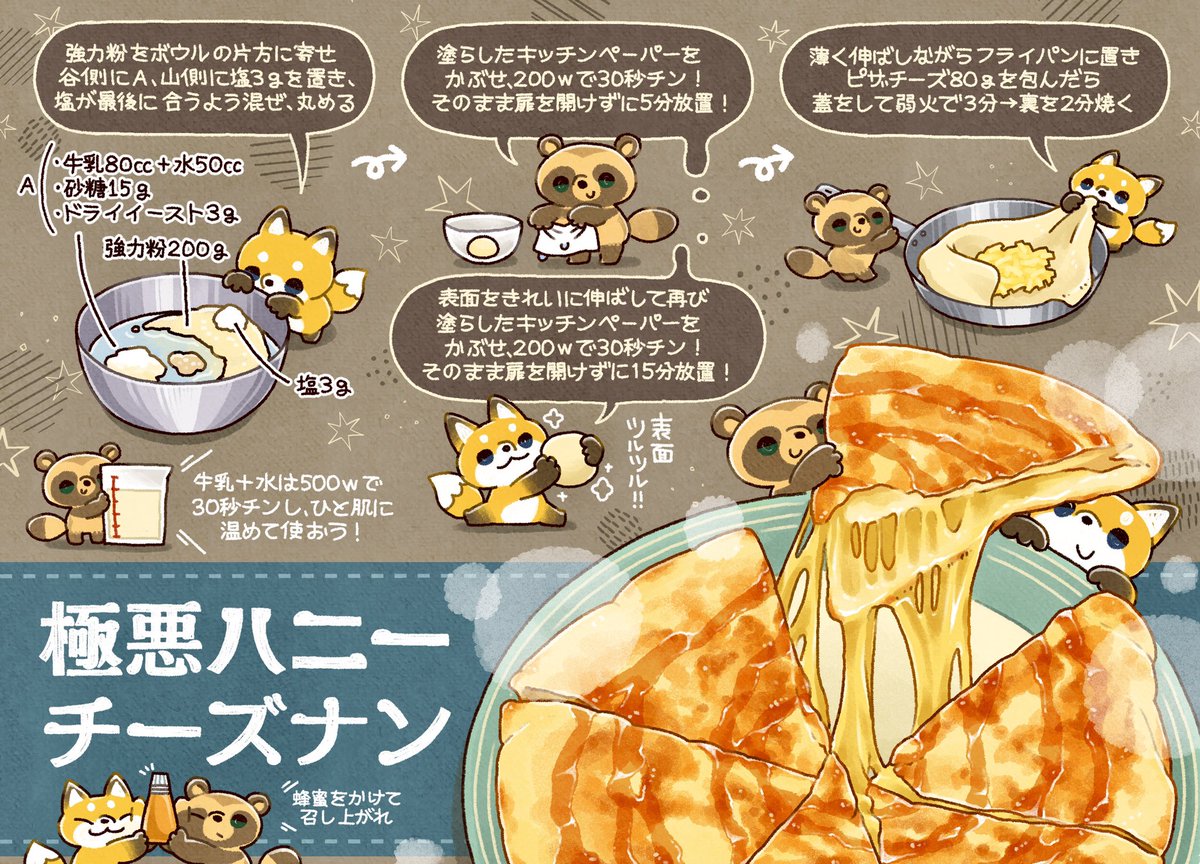 レンチン発酵20分でできる【極悪ハニーチーズナン】を見て??バリッモチッ…が美味しすぎて、カレーのこと忘れてひたすら食べれるよ!これ、フライパンで焼けます??? pic.twitter.com/BouObR3bAf— ぼく?イラスト料理研究...