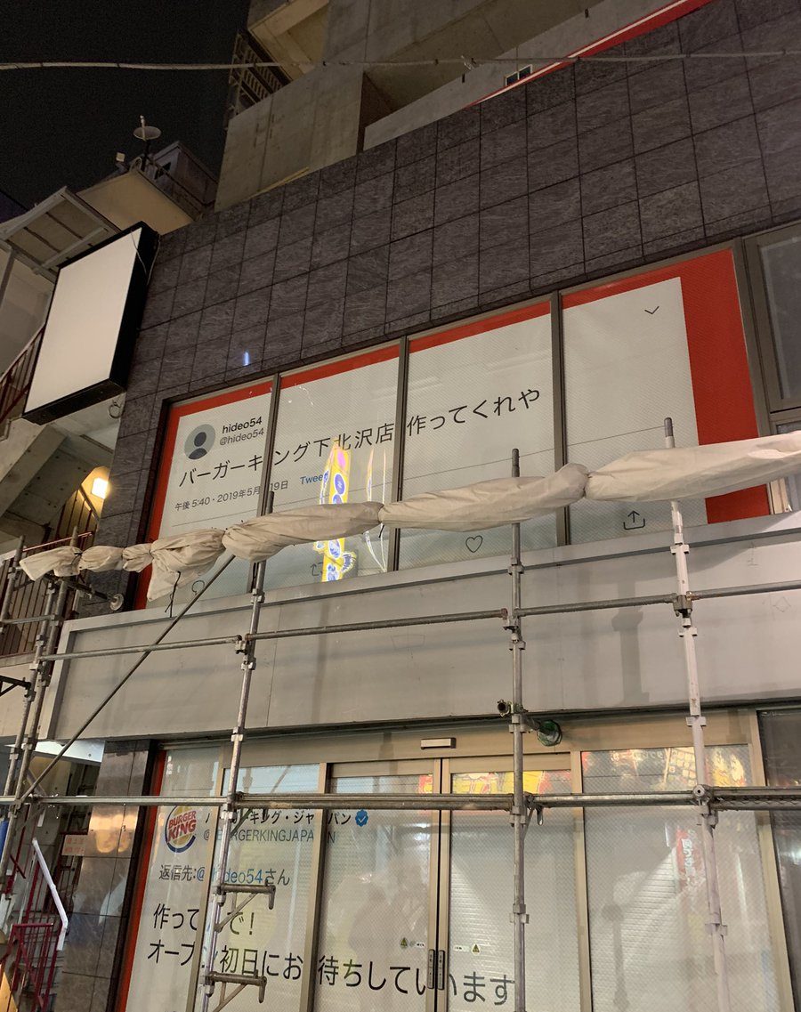 作ってんで!オープン初日にお待ちしています。— バーガーキング・ジャパン (@BURGERKINGJAPAN) 2019年12月9日ありがとうございます! 最高です????行きます! 通います!!— hideo54 (@hideo54) 2...
