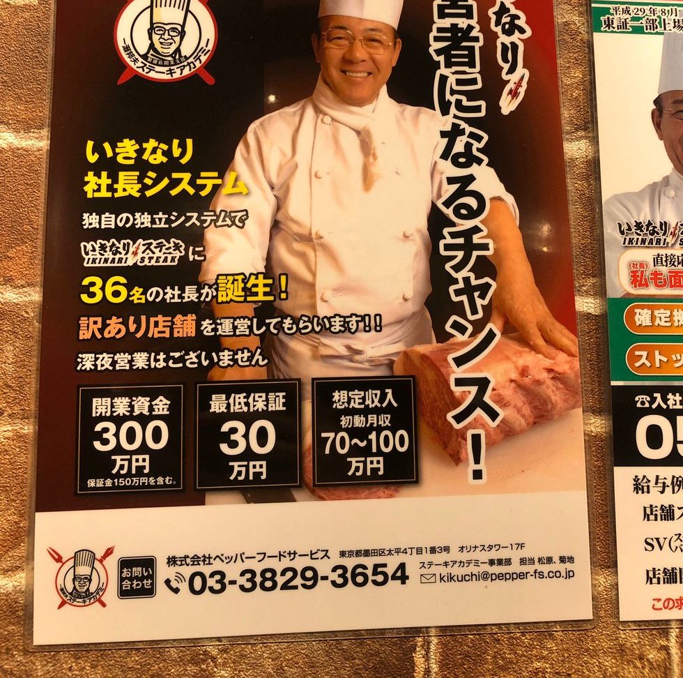 ババ抜きのババ 300万円で譲ります ってかw>6000万~8000万円と言われる飲食店開業費が、5%以下の総額300万円で「いきなり!ステーキ」を引継ぎオーナーに!飲食経験者におすすめ! pic.twitter.com/Kkcp258Tz...