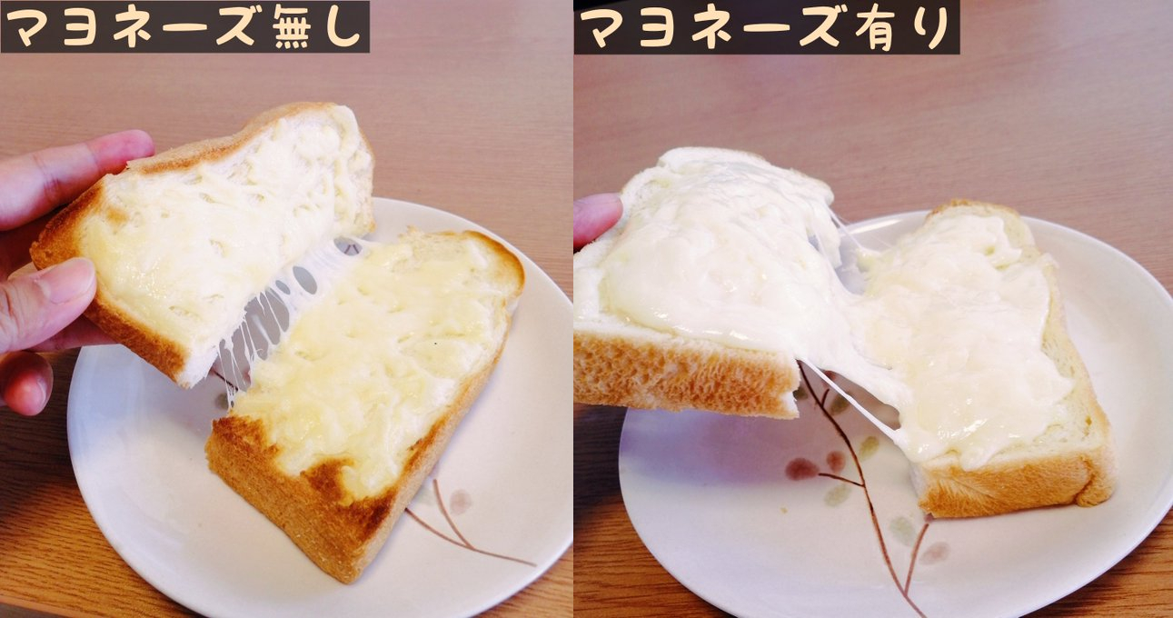 ピザ用のとろけるチーズにマヨネーズを混ぜてからパンに乗せて焼くと通常の倍とろける究極のチーズトーストが作れるってどうして義務教育で教えてくれなかったんですか pic.twitter.com/JmcmnqZ0jn— ゆず (@yuzuyu_2...