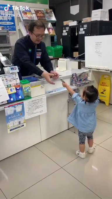 コメント欄で迷惑とか言われてるし、、、、まじでコンビニ店員してる人なら分かると思うけどイライラしてるサラリーマン捌いてる時にこんなお客さん来たら2時間はレジ頑張れるからな??癒しでしかない?? pic.twitter.com/mMDuTls...