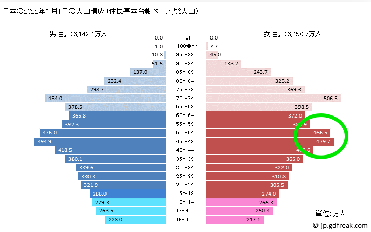 遅くてもやらないよりマシだけど、残念ながら最後の10年のチャンスはとっくに終わりました人口動態的には緑で囲った、第2次ベビーブーマーの45歳-55歳の女性たちが出産可能であった2003-2013年がラストチャンスでしかも氷河期世代、ここを見...