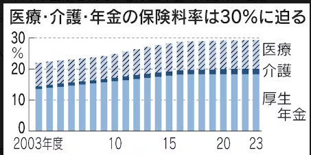 「アレ!? 給与明細見たら、手取り減ってる…?」私「4月納付分から健康保険と介護保険料率がまた上がったからですね。消費税なら1%上がるだけで大モメなのに、社会保険料率はシレっと上がり続け、労使合計で30%!! 一方で大卒初任給は30年間横ば...