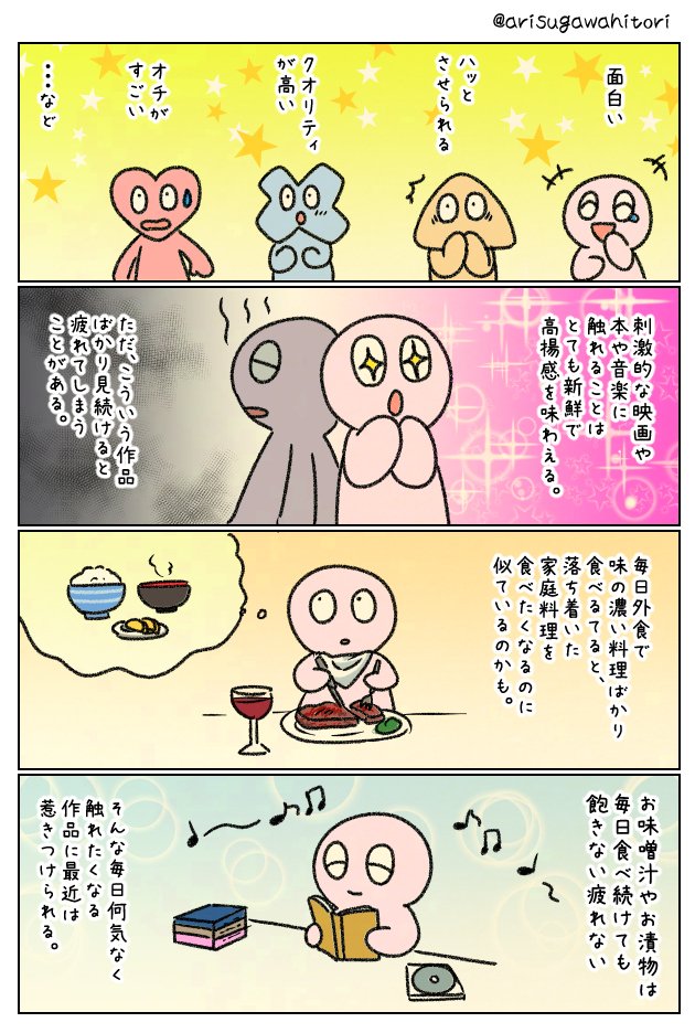 刺激的な作品を見続けると疲れることがある。 pic.twitter.com/CEOxXAeKKT— 有栖川ひとりっ子 (@arisugawahitori) 2017年8月17日