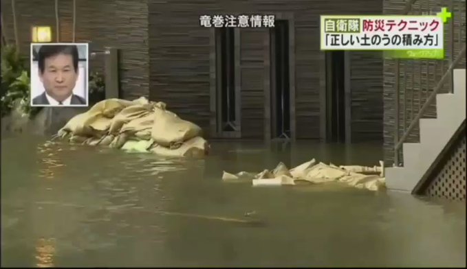 ツイッター 自衛隊防災テクニック『正しい土のうの積み方』
