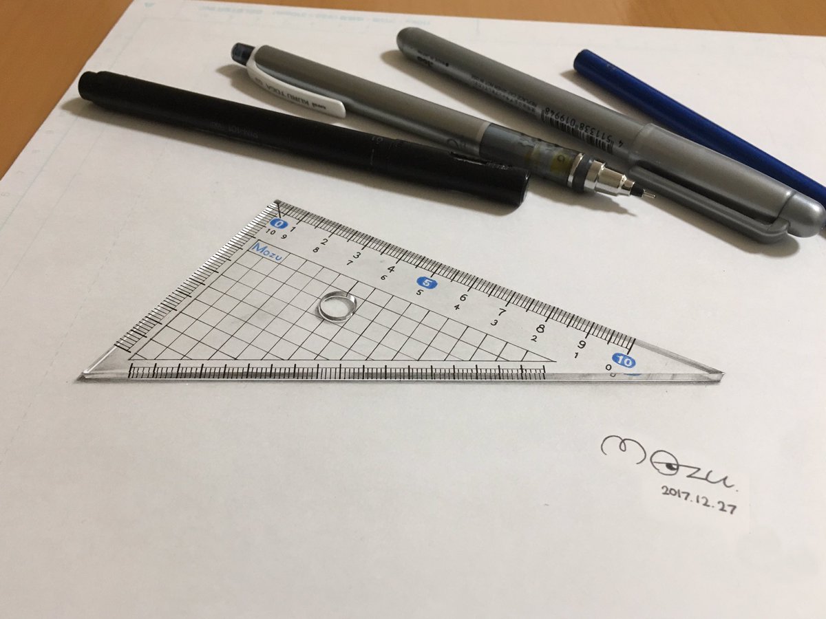 中学3年生(15歳)の時描いた三角定規と、現在(19歳)の僕が描いた三角定規。ちなみに1枚目、消しかすも描きました。 pic.twitter.com/cY1lTyhJeo— Mozu 作品集発売中! (@rokubunnnoichi) 20...