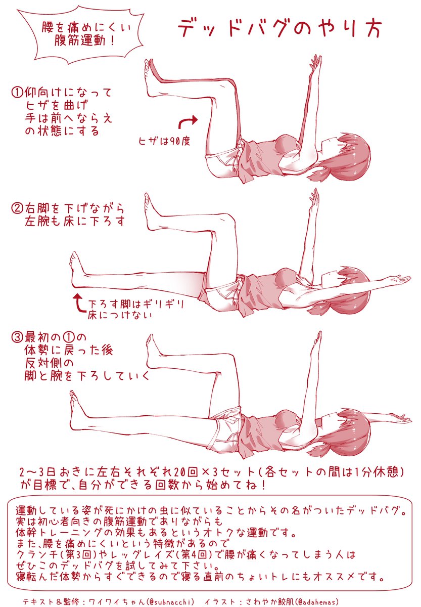 仰向けの状態からすぐにできるので、寝る前のちょっとした時間なんかにオススメの腹筋運動です。腰を痛めにくい特徴があるので、これまでの運動で「腰が痛くて無理~!」となってしまった人はやってみる価値があります。くっきりとしたシックスパックやくびれ...