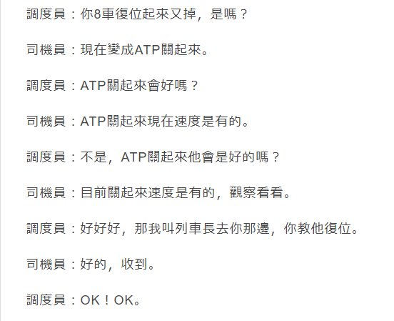 台鉄脱線事故車の交信記録読んでるけどここがヤバい。二人ともまともな鉄道従事者の会話ではない。運転士 ATP切ったわ指令員 ATP切ったら状況良くなったか?運転士 ATP切ったら速度が出るようになった指令員 OK!OK pic.twitter...