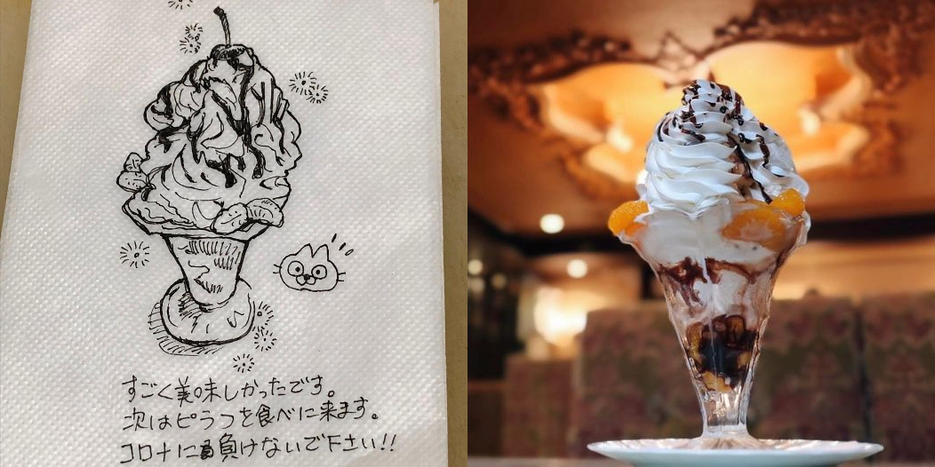 1日の売り上げが1万円という日々が続き、常に『廃業』という言葉が頭に よぎっていた2年前、ナプキンの裏に描かれた、イラスト付きの このメッセージをいただいて「やれるところまでやってみよう」という気になり、そして今があります。#珈琲王城 #店...