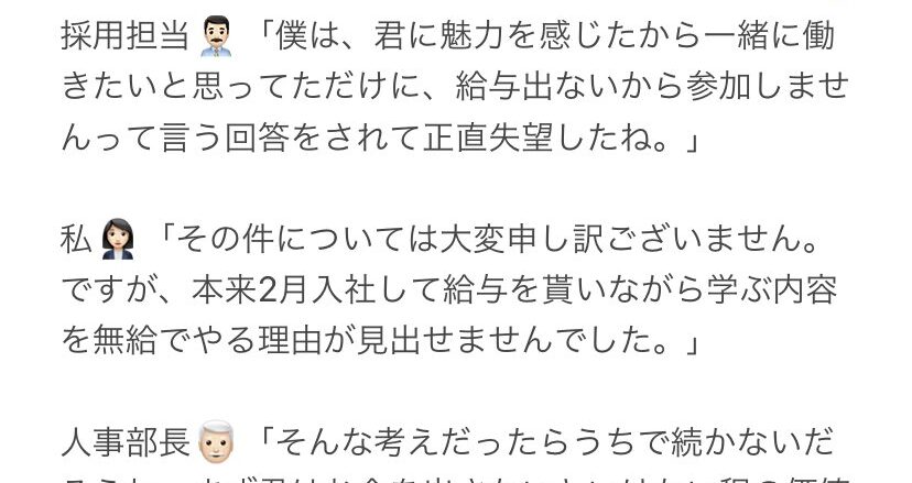 今日の面談内容です。内定辞退する事になった決定的な会話を部分的に書き出しました??詳しくは言えないですがまだ求人載せてて事務職で人気あると思いますが地雷もあるので気をつけて… pic.twitter.com/foRh5i5xHK— 新人ある...