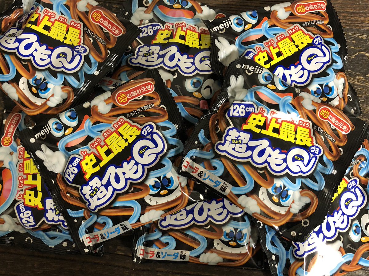 「超ひもQ」が2019年7月で生産終了。明治さんに確認したら、コーラ&ソーダ、グレープ&マスカット共に市場に出ているもので終了とのことでした。1993年からのロングラン商品、寂しいですね?? pic.twitter.com/KoJnjZEo...