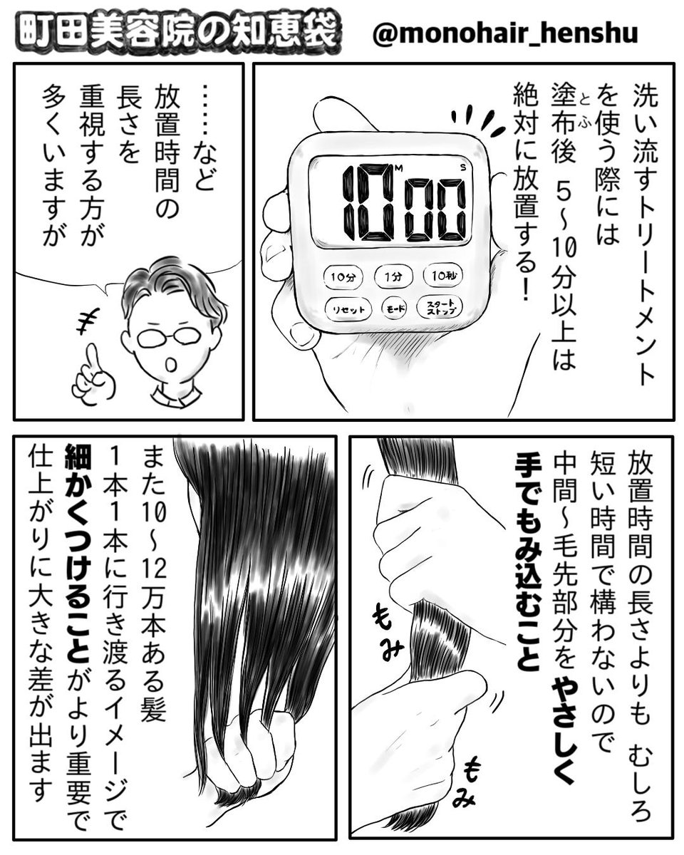 ①「放置よりも効果的?2分30秒で仕上がりに違いが出るトリートメントの使い方」 pic.twitter.com/RWIWTH3x4w— 宇野和弘@漫画 (@monohair_henshu) 2019年2月16日②「放置よりも効果的?2分30...