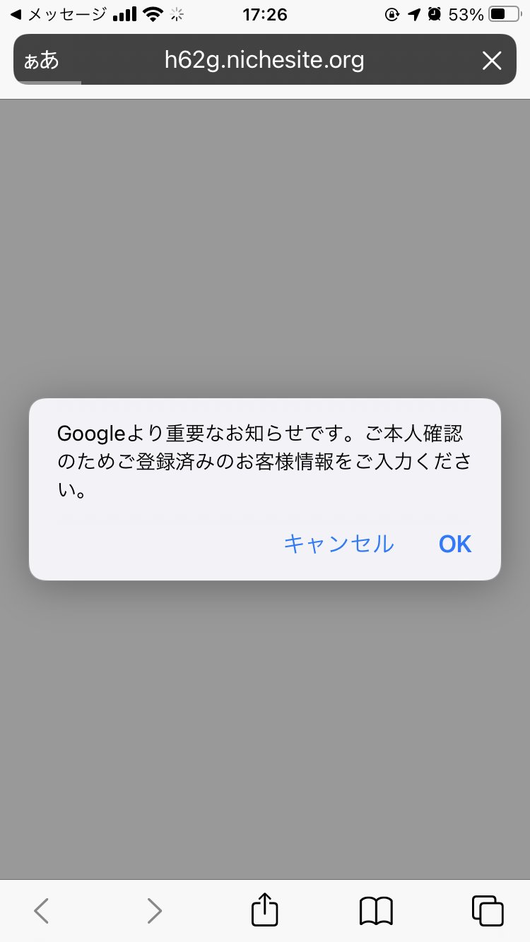 いきなりクレカ情報の入力画面が出現するSMS誘導のAmazonのフィッシングを仕掛けていた人たちが、そのGoogle版を始めたようです。「Googleより重要なお知らせ。ご本人確認のためお客さま情報を更新願います。」というSMSが国内の携帯...